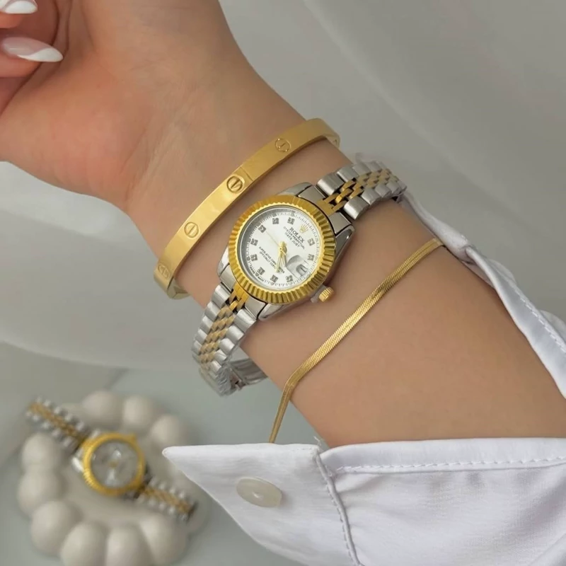 ساعت زنانه رولکس دست جاست تقویم فعال کیفیت A با جعبه