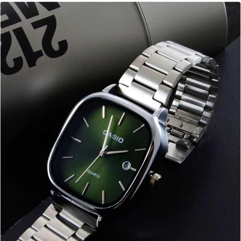 ساعت مچی مردانه کاسیو اولدمانی موتور ژاپن بدنه فول استیل کیفیت اصلی رنگ استیل صفحه سبز با جعبه