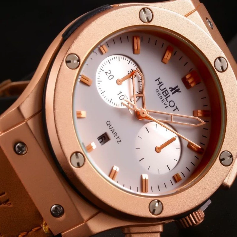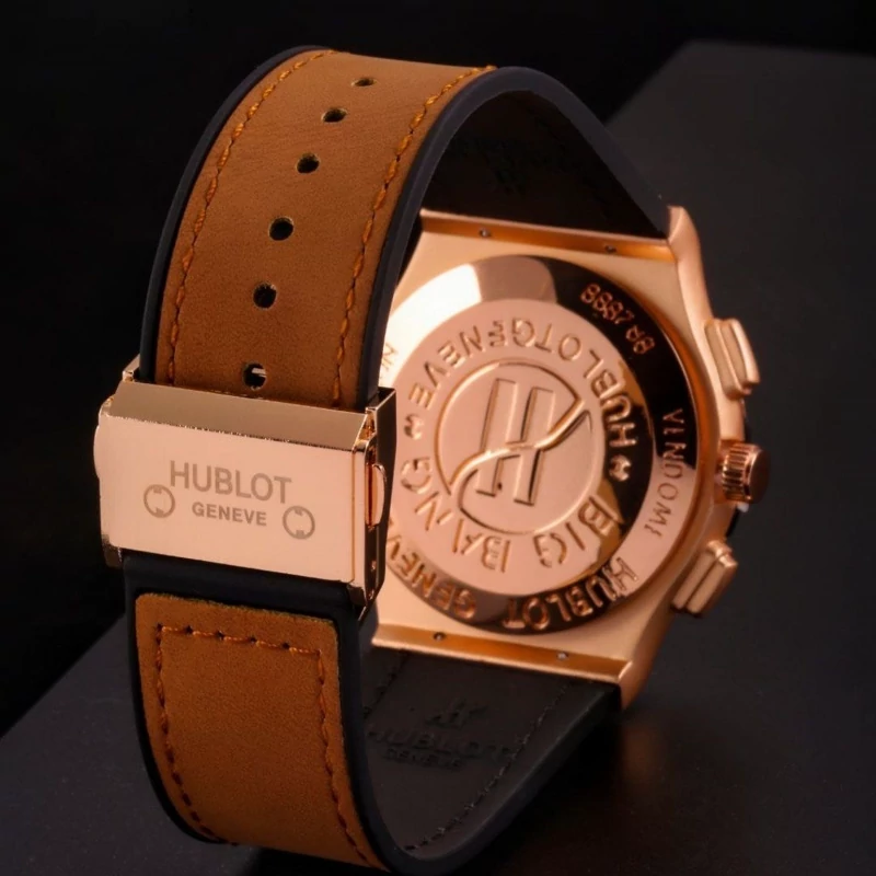 💫Hublot ساعت هابلوت مردانه موتور باکیفیت دارای روزشمار بند چرمی رابر قفل استیل پروانه ای هابلوت قفل کلیپسی اصلی حک شده حک آرم روی قفل و بدنه تنوع رنگ بندي