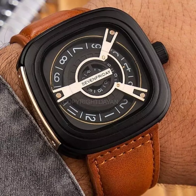 Seven friday For men ❌برای آقایان موتور شرکتی بند چرم اصلی سونفرایدی پلاک پیچ شده بغل قاب قفل سگکی در سه رنگ ❌به همراه جعبه